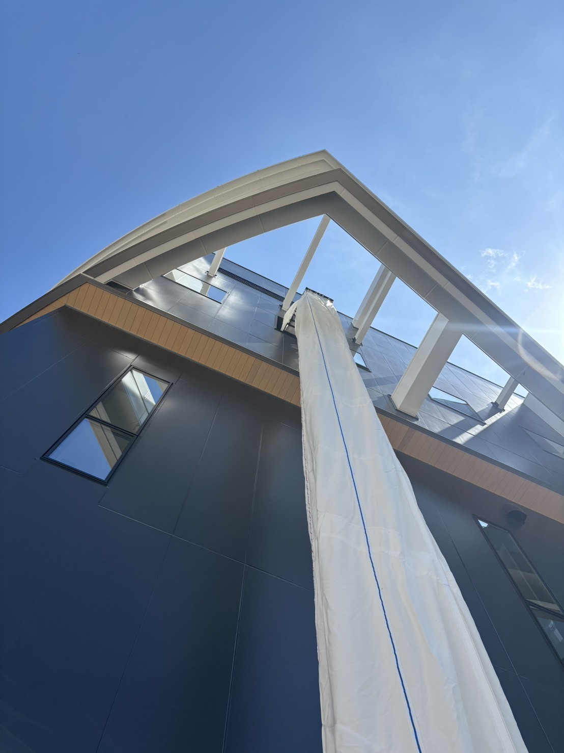 1.1階部分にある送水口に消防ポンプ車のホースを接続